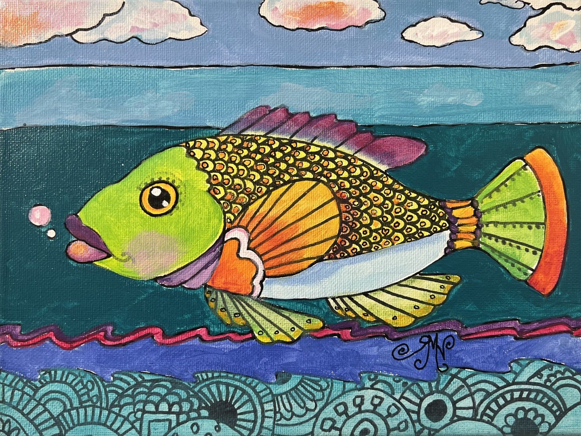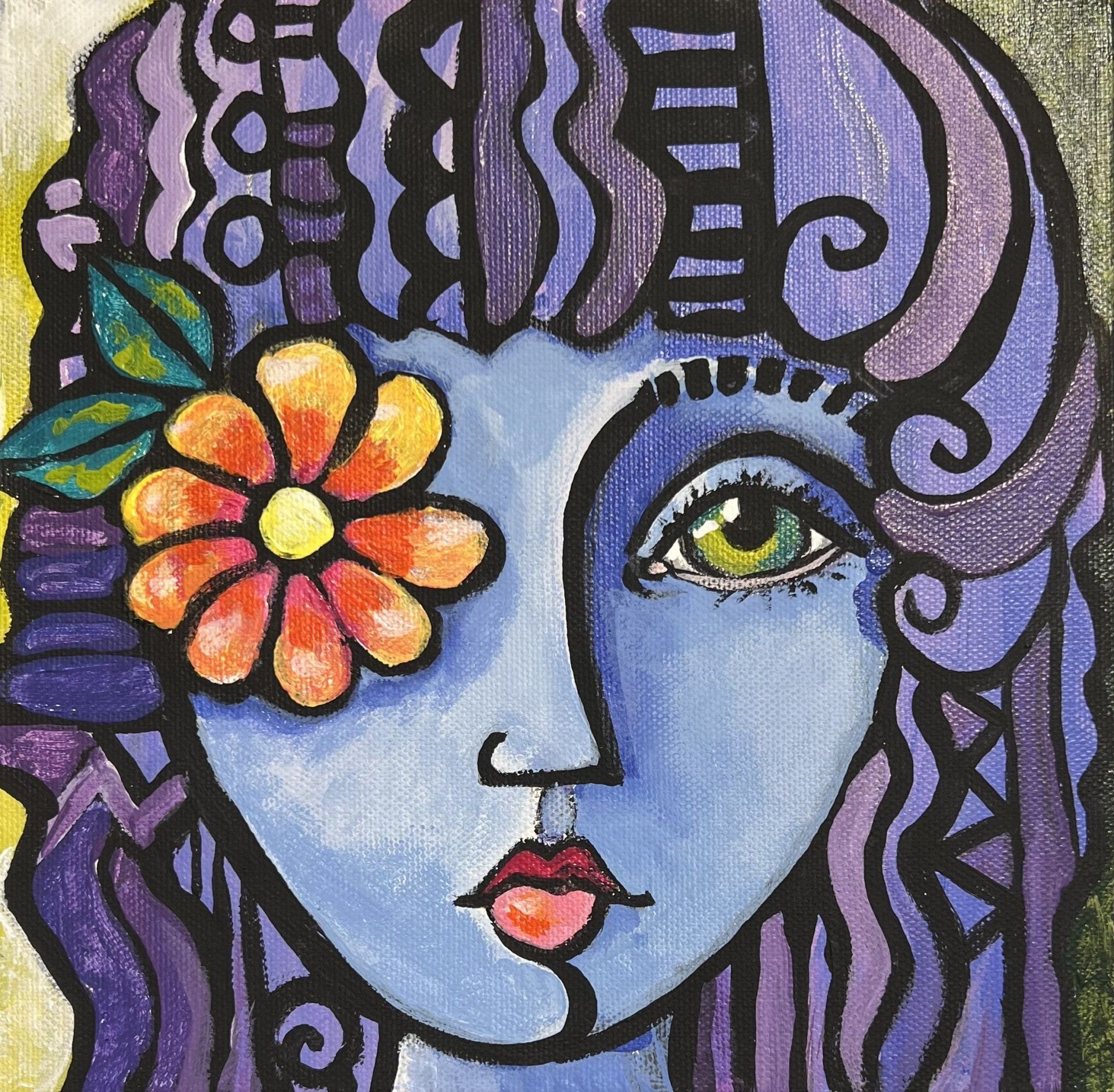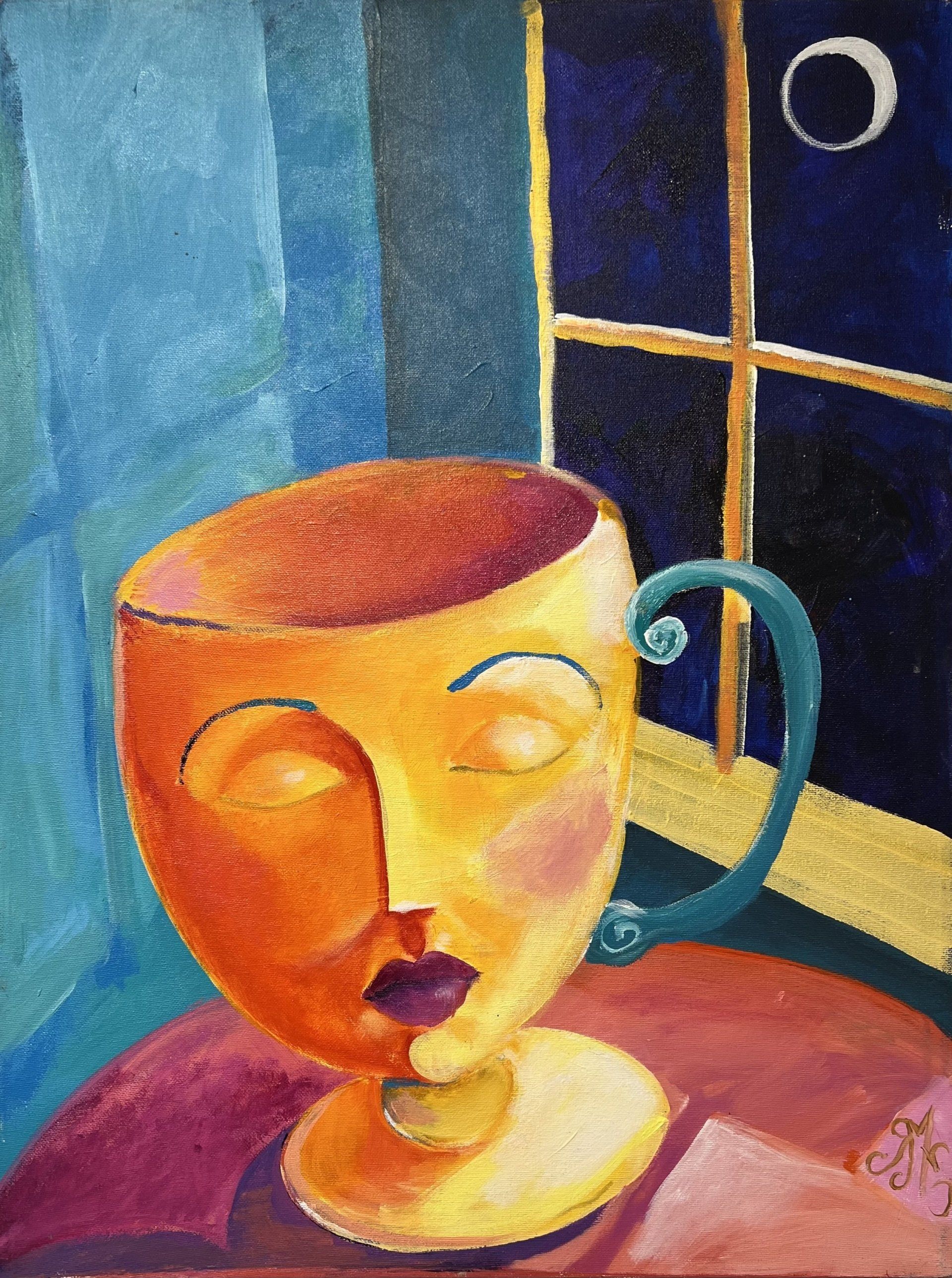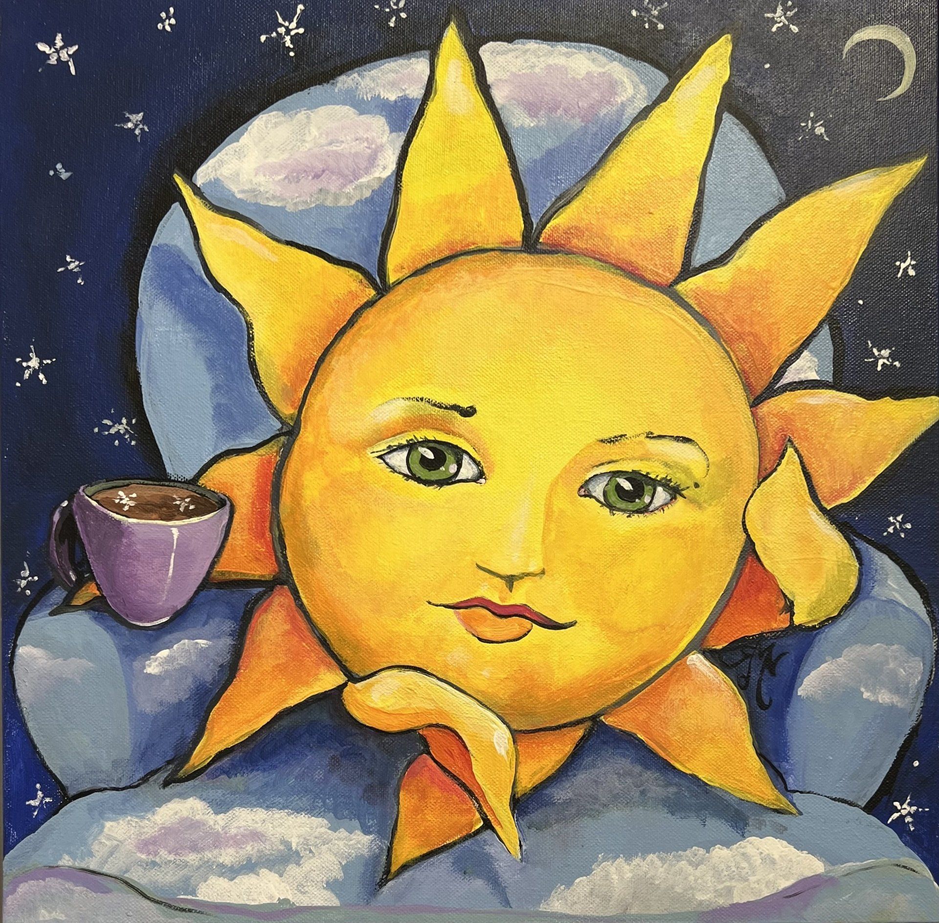 "My background as an illustrator and my childhood influences merged into what has become my current work. Many subjects are visited often in the artwork: cats, fish, suns and moons join turbaned women, along with my version of my daughters. These themes bring me joy, and it is my sincere hope that my works contribute to the happiness of others."