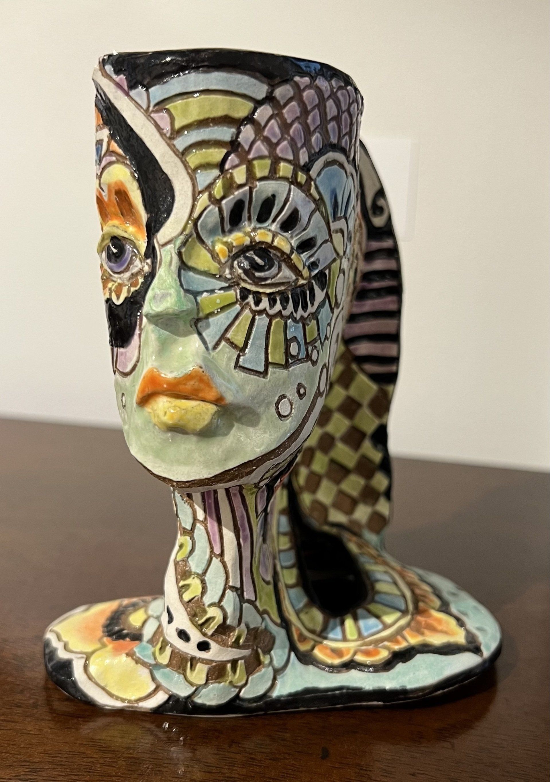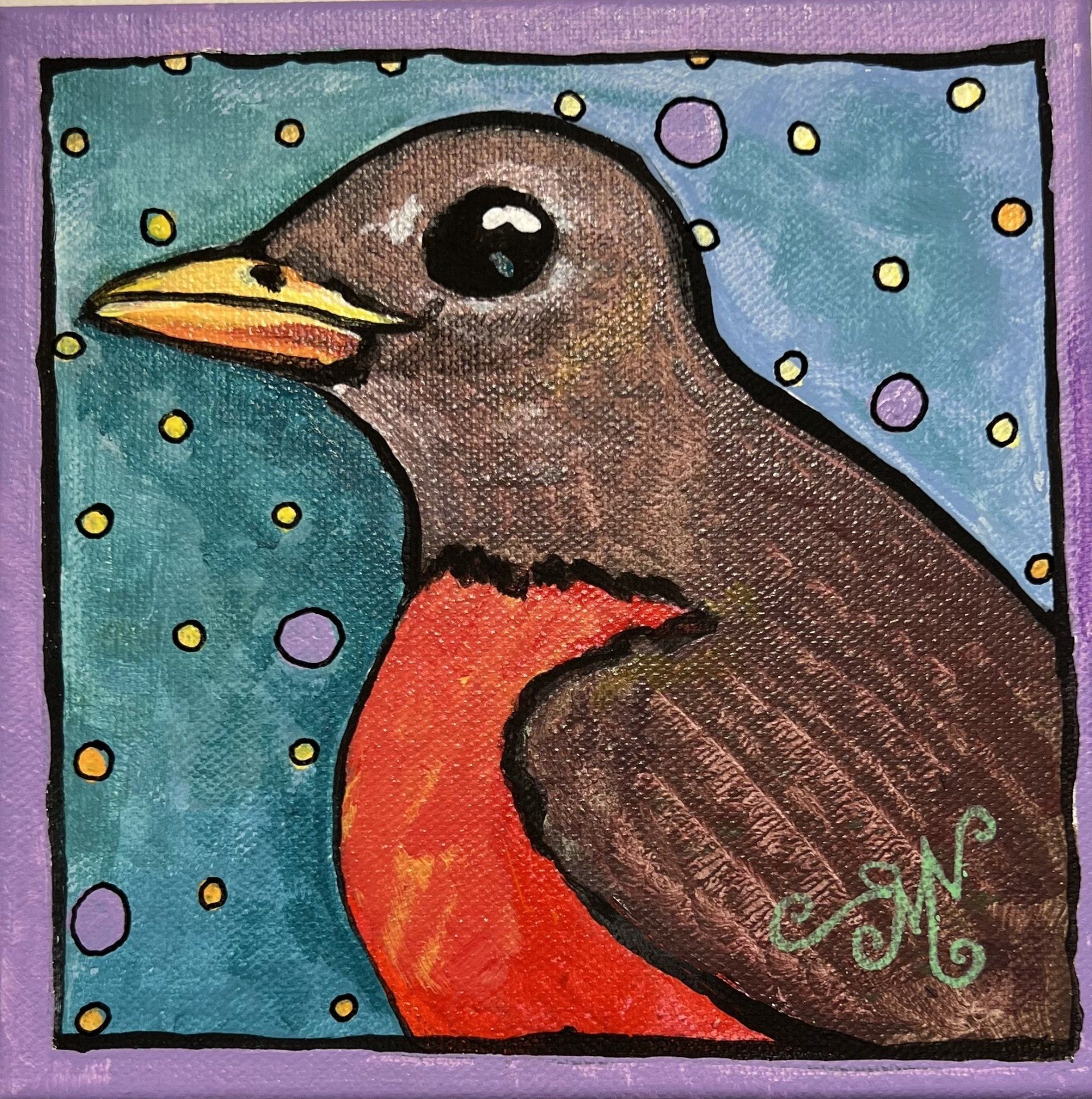 "My artwork is inspired by my life as a child of the mod '60s. The colors and patterns of clothes and advertising from my childhood weave their way into my drawings, paintings, and clay work." Robin worked for many years as an illustrator of greeting cards, calendars, and promotional materials.