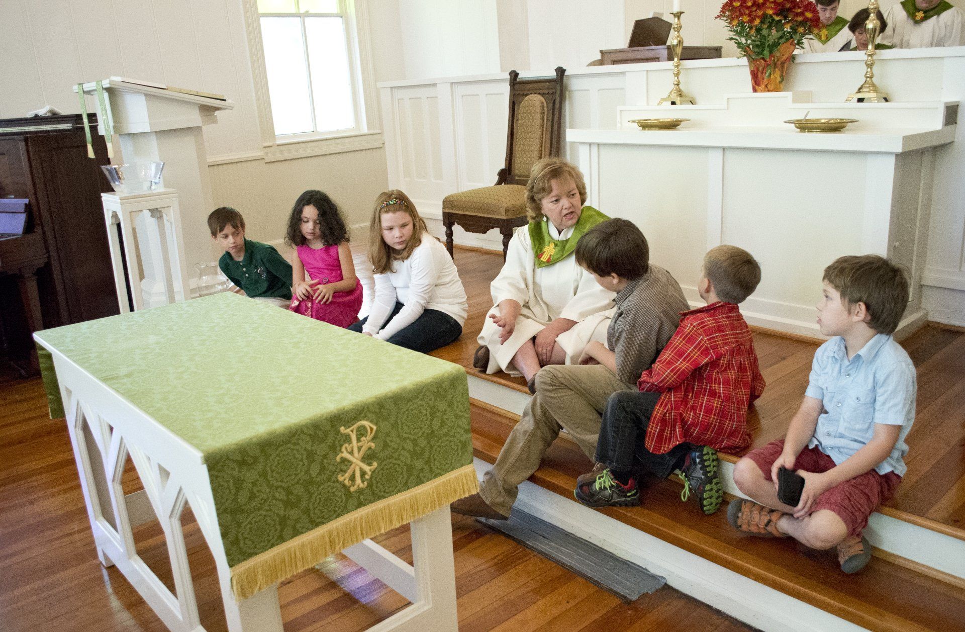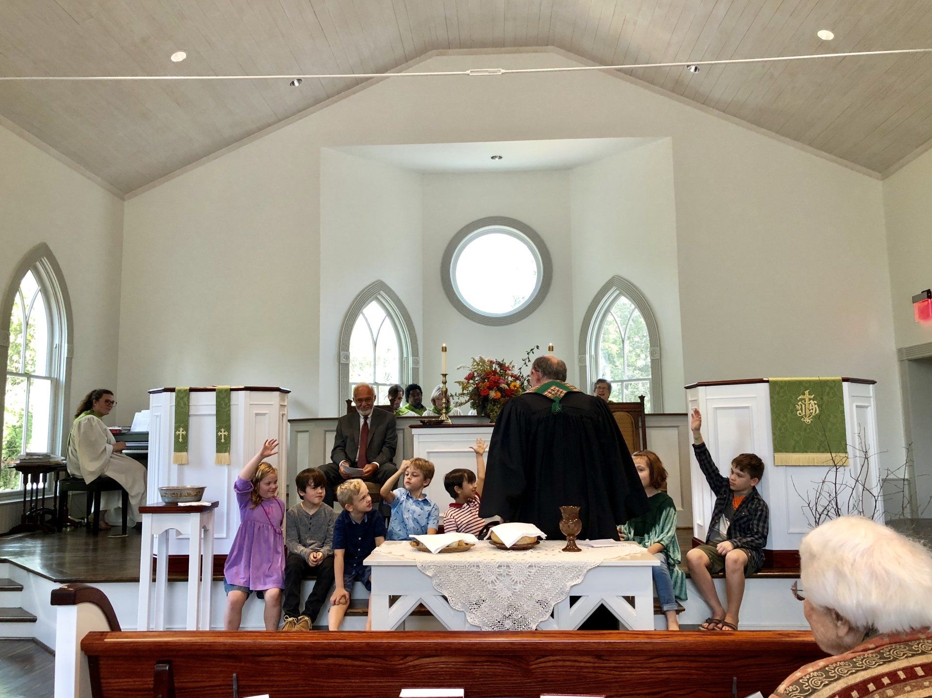 During worship, kids are invited back into the sanctuary after the sermon and before communion (when communion is served) for a special message during Children's Time.